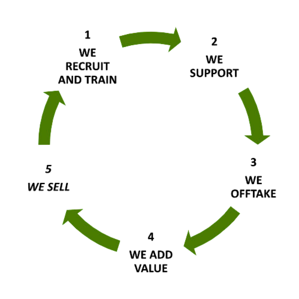 Our business model organizes smallholder farmers to access agribusiness support, fair, reliable, and modern markets.